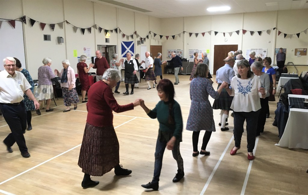 We had a good number of dancers at our St Andrew’s Night Ceilidh on 1st December 2022. A very enjoyable evening was had by all. The bring and share supper was well received as was the glass of wine and raffle tickets included in the entry price of £3. All proceeds from the event are going to the Dorset & Somerset Air Ambulance, our chosen charity for this year. The delicious sponge cake decorated with the saltire Cross was made by Jan Mason.