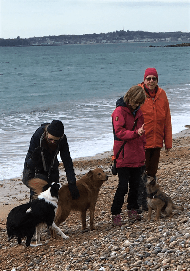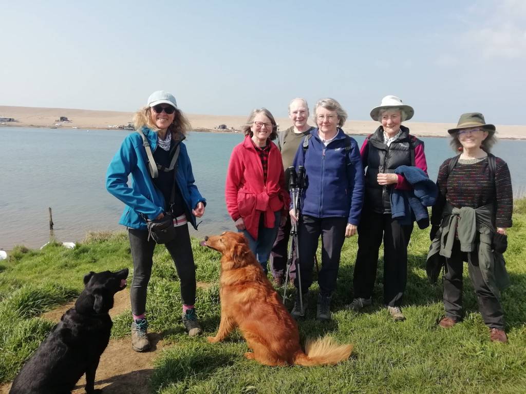 Pirates Cove walk. The sun shone, the mud had dried up, the tide was almost out and the company was as entertaining as ever. Lovely walk from Pirates’ Cove by the Fleet Lagoon, followed by generous refreshments at The Fat Badger. Rufus and Bonnie were model pups!