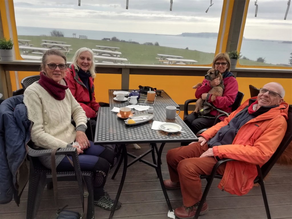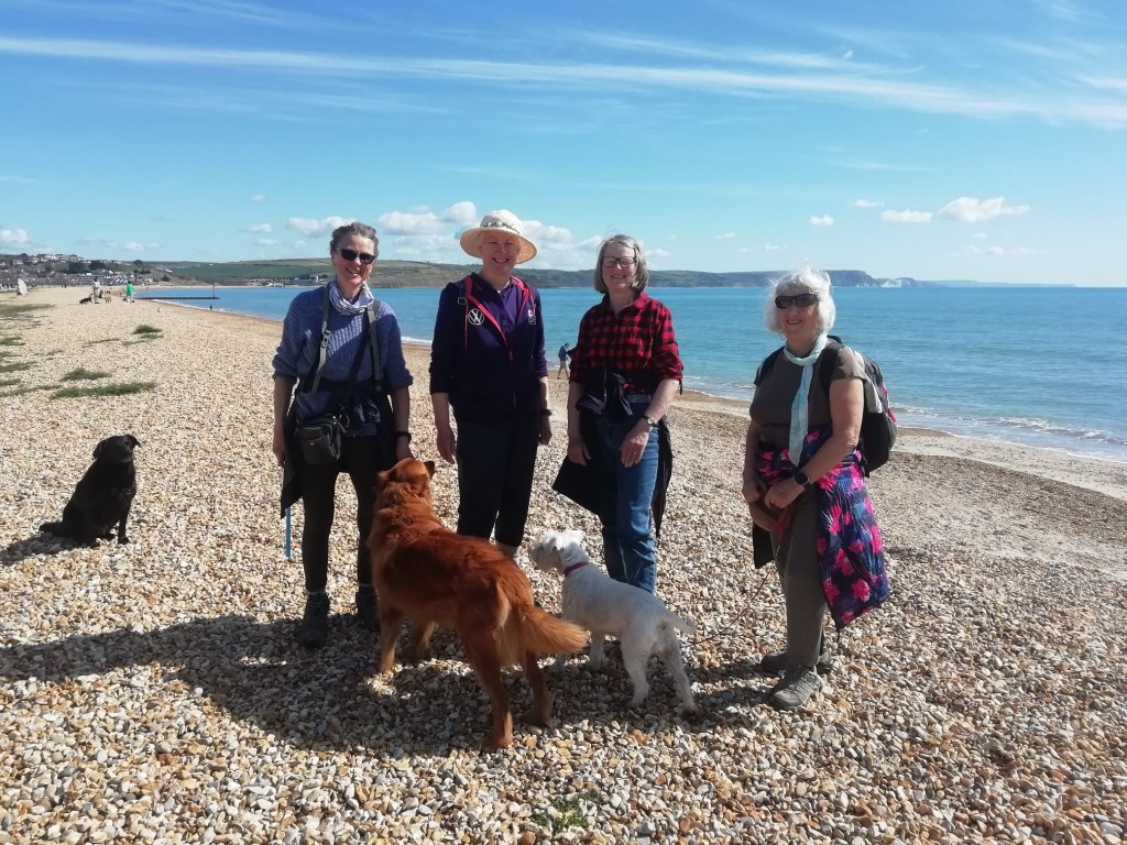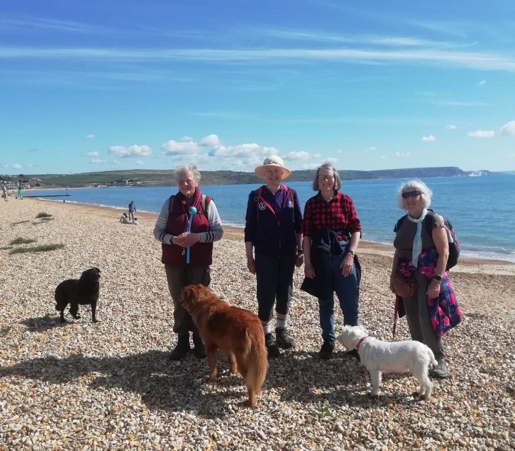 Repeat of Bowleaze Cove to Redcliffe Point walk, past the PGL camp to the beach and back. Angie, Liz, Graham and Rosie and three dogs Rufus, Tess and Humphrey enjoyed a lovey walk followed by refreshments at the Lookout Cafe.