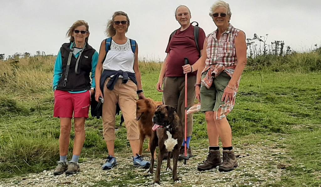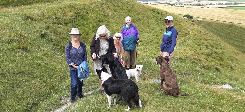 Walk from the Springhead pub at Sutton Poyntz run by Pat. Approx 4 miles. A lovely walk up White Horse Hill, a stop at Margaret’s Seat and refreshments in the Springhead. The weather was perfect for walkers Pat, her friend Maggie, Rosie, Val B, Angie and 3 dogs.